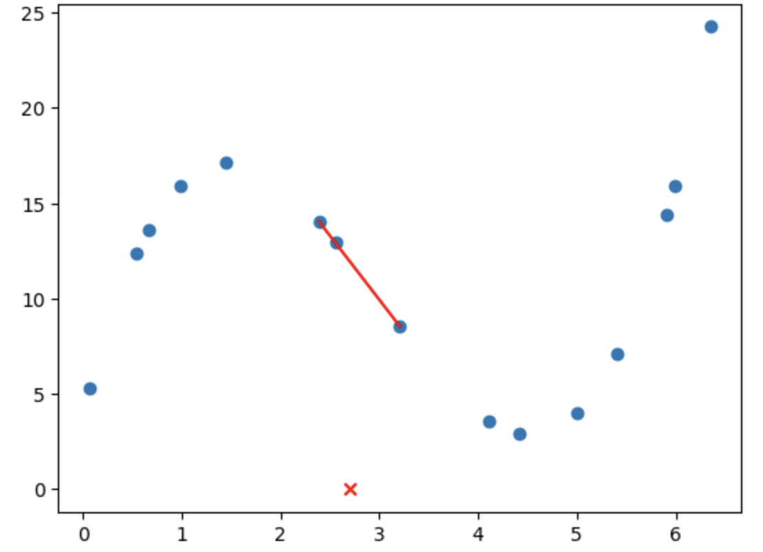 - 다음과 같이 예측하고자 하는 x값을 기준으로 3개의 데이터만 생각하여 Linear regression을 하니까 더 정확해진것을 확인할 수 있다.