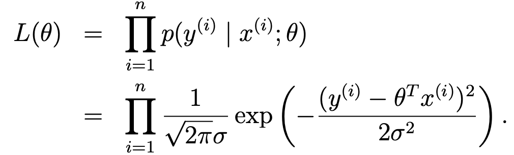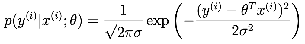 - y_i의 분포는 다음과 같을것이다. 왜냐하면 예측값은 theta^T*x_i인데 여기서 정규분포를 보이는 error를 더했기 때문이다.