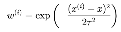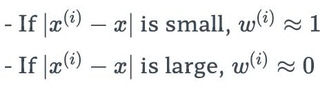 - 기존의 선형회귀 식에서 w_i 즉 가중치함수만 곱해졌다.