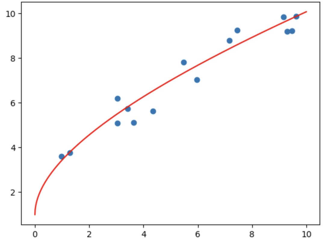 - 일차 함수로 예측했던것보다 더 데이터를 잘 예측하는 모습을 보인다.