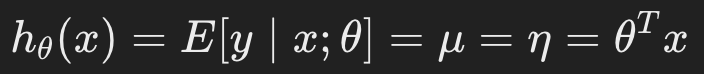 - 이는 선형 모델의 output의 기댓값과 같다. E[y|theta^Tx]