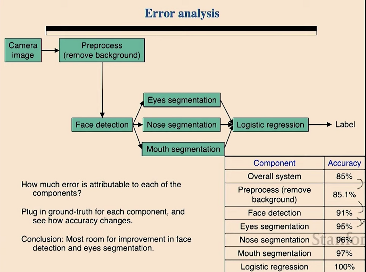 - error Analysis는 각 파트 별로 나눠서 각각 error을 평가해 분석하는 것을 의미한다.