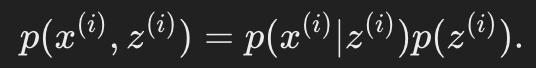 - 데이터의 modeling을 위해 다음과 같은 joint distribution을 정의해보자.
