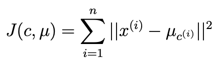 - k-means clustering을 수식으로 나타내면 다음과 같다.