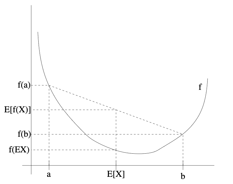 - Jensen's Inequality는 convex function에 적용된다.