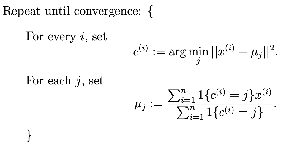 - K-means Clustering의 cost function은 다음과 같이 정의된다. (무조건 수렴한다고 알려져있다.)