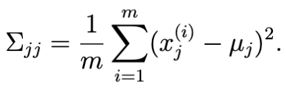 - covariance matrix을 Diagonal matrix로 가정한다. 이 경우, MLE는 다음과 같다.