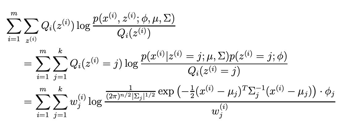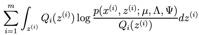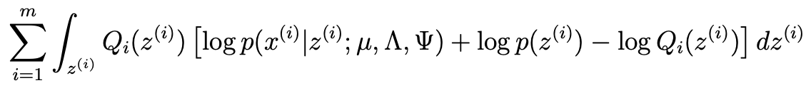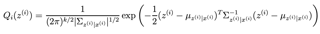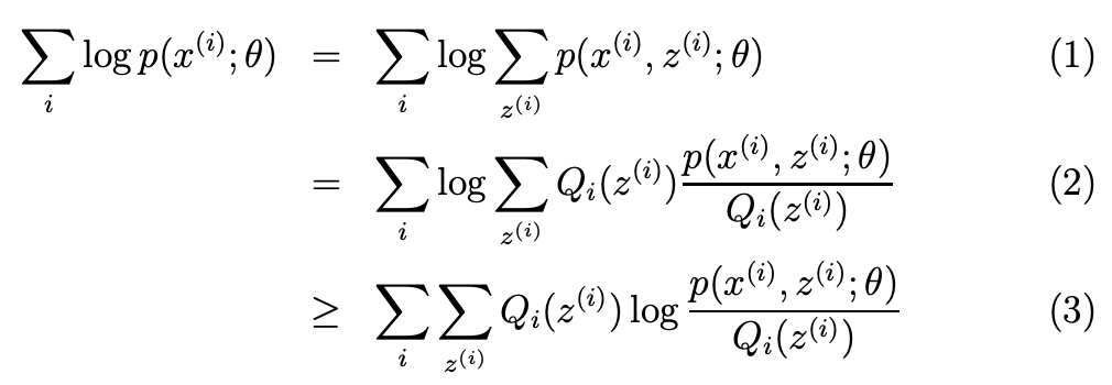 - 각 i에 대해, Q_i를 z에 대한 어떤 분포라고 하자. 그러면 다음과 같은 식이 유도가 된다.