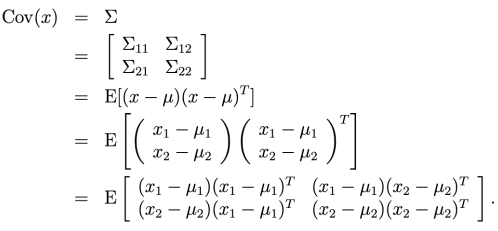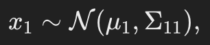 - 여기서 E[x1] = mu_1 , Cov(x_1) = sigma_11이다.