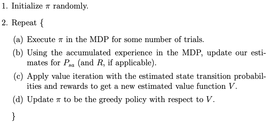 - MDP를 해결하기 위해 우리는 다음과 같이 구현하면 된다고 한다.
