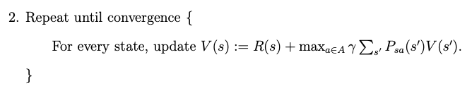 - 첫 번째 알고리즘인 value iteration은 다음과 같이 진행된다.