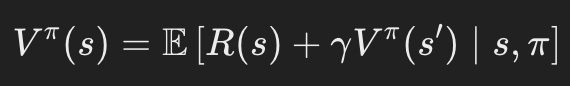 - 모든 상태 s와 모든 정책 ㅠ에 대해 다음 관계가 성립한다.