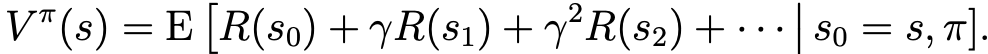 - policy ㅠ 에 대하여, V^ㅠ는 S -> R로 mapping하는 함수이다.