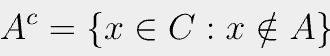 - A의 complement set의 의미는 전체집합 U의 원소 중 A의 원소가 아닌 것들의 집합이라고 한다.
