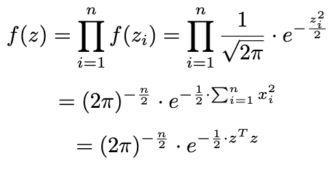 - 여기서 f(z)를 우리는, standard multivariate normal distribution이라고 정의한다.