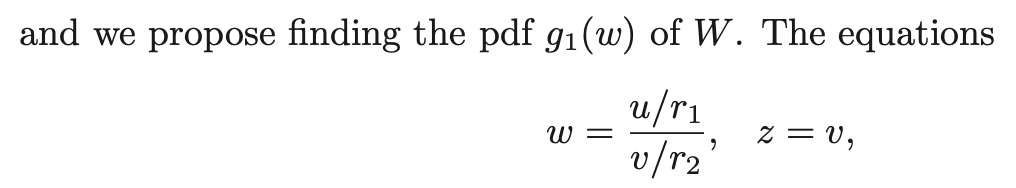 - W와 Z=V의 joint pdf는 다음과 같이 주어지게 된다.