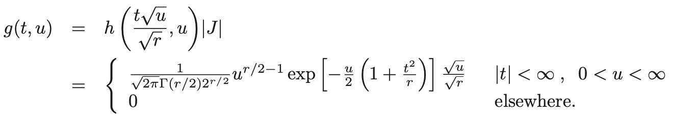 - 해당 변환을 사용하여 T의 pdf를 다음과 같이 유도가능하다.