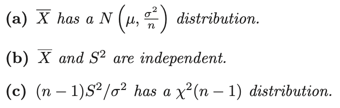 - X1,X2,...,Xn이 평균 mu 및 분산 sigma^2을 가지는 정규분포를 따르는 iid R.V라고 하자.
