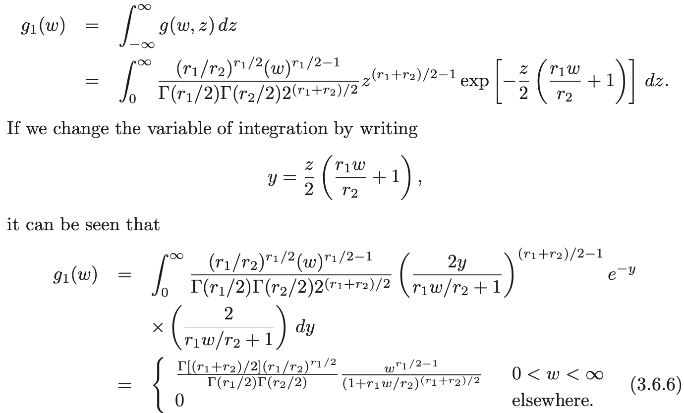 - F-distribution의 Expectation은 다음과 같이 주어진다.(mgf를 통해 구할 수 있음)