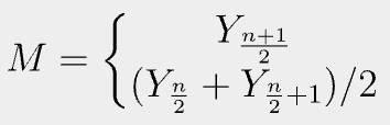 - 첫번째 식은 n이 홀수일때, 두번째식은 n이 짝수일때의 중앙값을 구하는 방법이다.