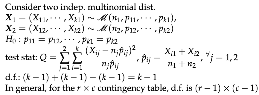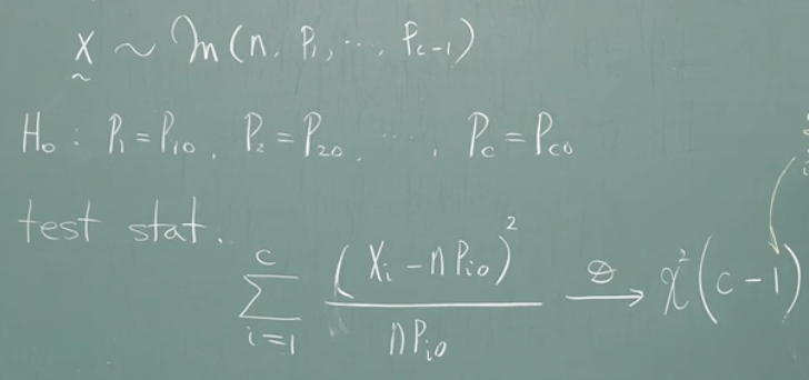 - 해당 test statistic이 X^2_alpha(c-1)보다 크다면 H0를 기각한다.