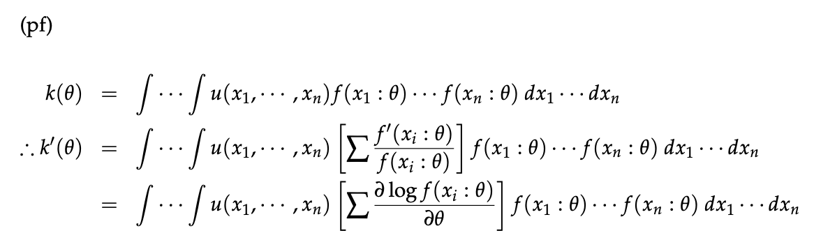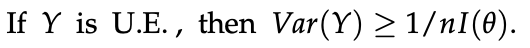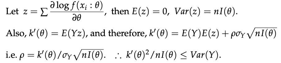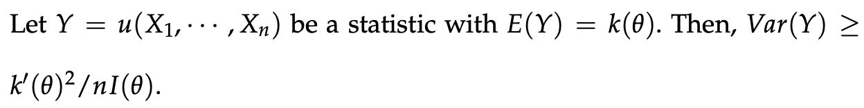 - 만일 Y가 Unbiased Estimation일 경우, k(theta) = theta가 되기 때문에, k'(theta) = 1이 된다.