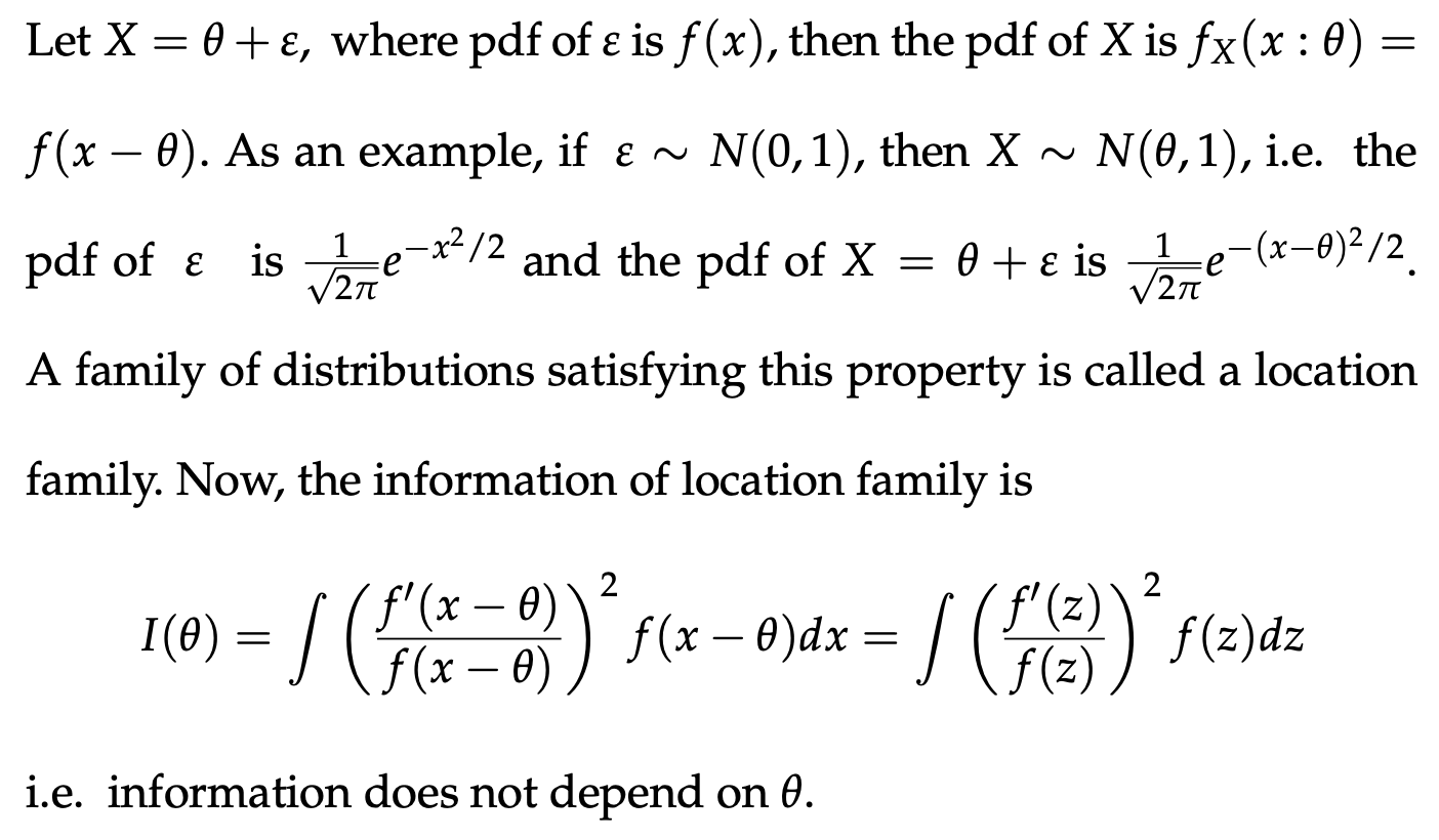 - 즉, distribution의 형태는 동일하지만, 위치만 theta만큼 이동하게 된다.
