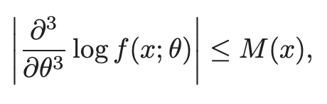 - pdf가 theta에 대해 세번 미분가능하고, 모든 theta ㅌ Omega에 대해 상수 c와 함수 M(x)가 존재하여 다음을 성립한다.