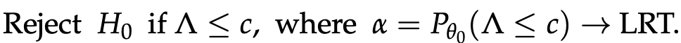 - 만약 대립가설이 참이라면 Likelihood ratio는 0에 가까워 질것이다.