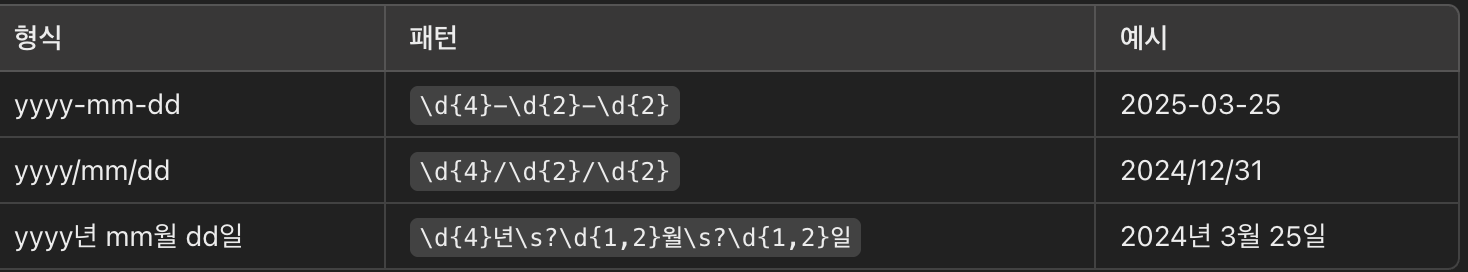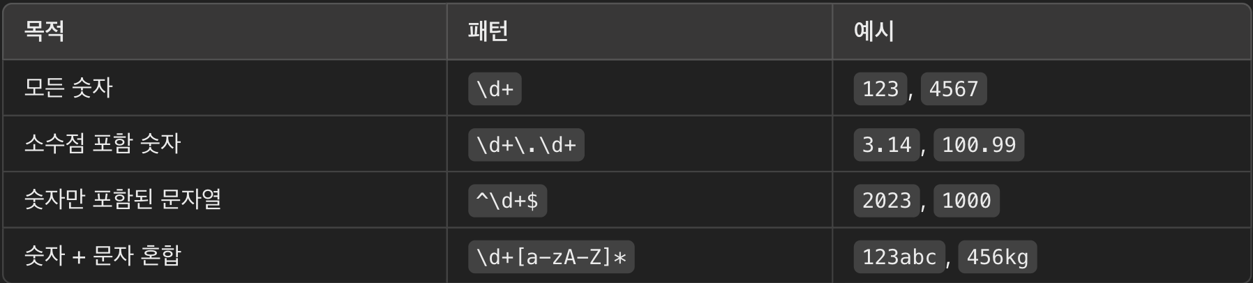 - Web Scraping할 때, 특정 데이터(이메일, 날짜, 숫자 등)을 추출할 때 매우 유용하게 쓰인다.