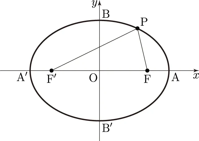 [[picture : 중심이 원점인 타원, x축에서 ±a, y축에서 ±b 표시, 장축/단축 구분]]