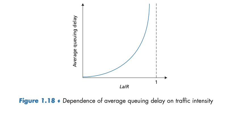 - Queueing delay는 다른 지연들과 달리 패킷마다 변동하고, "트래픽의 강도/버스트성"에 의해 지배된다.