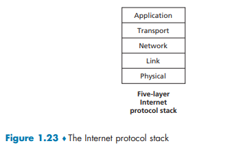 - 책에선 다음과 같이 인터넷 프로토콜 스택이 Physical, Link, Network, Transport, Application의 5계층이라고 한다.