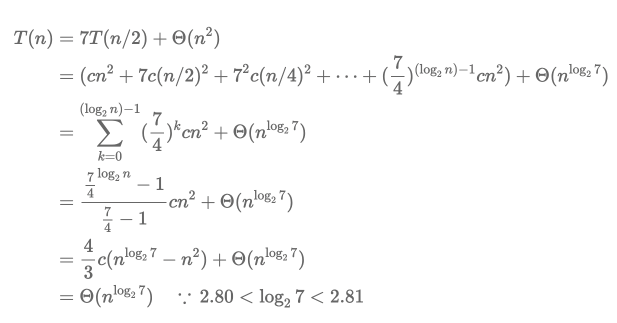 - 하지만 Strassen 알고리즘이 등장한 순간부터 그 고정관념이 부셔지게 되었다