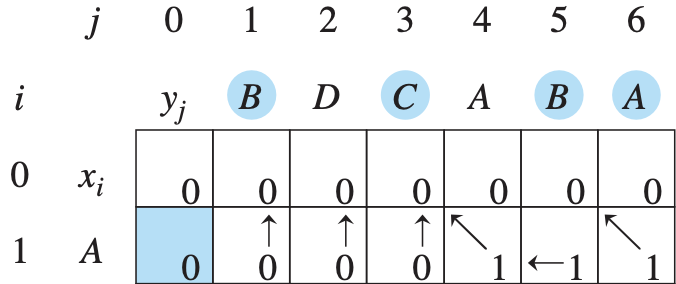 - 여기서 [A,C]의 의미는 'A'와 'BDC'사이의 LCS길이를 의미한다.